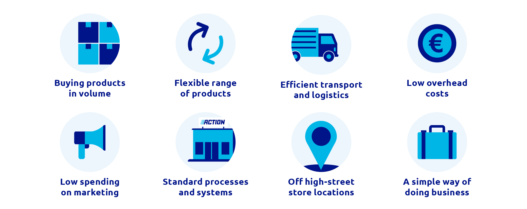 Action is a fast-growing non-food discounter. We serve an average of 21.6 million customers every week. With more than 3,300 stores, we offer 6,000 products in total – everything from daily necessities like detergent and deodorant to products that help make daily life easier or more enjoyable like candles and home decorations – all good quality products and increasingly sustainable.